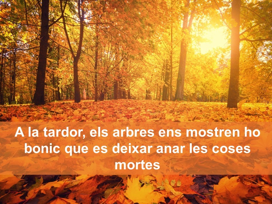 Els arbres a la tardor són inspiradors. Fixeu-vos en com no s’aferren a les fulles, deixant-les caure alliberant-se de les coses velles per donar pas a les noves. I tu, a que t’afferes, què no deixes caure?